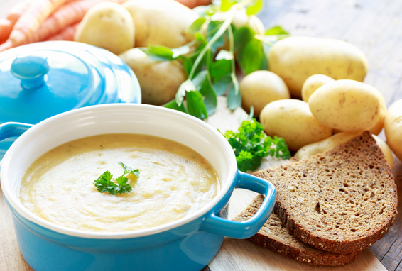 Un plat chaleureux et bienfaisant: recouvrir d’eau des pommes de terre et un morceau de gingembre et cuire jusqu’à tendreté. Réduire en purée, saler et épicer (avec ail, curry ou basilic, par ex.). Garnir avec des herbes fraîches, des croûtons et du fromage de brebis émietté.