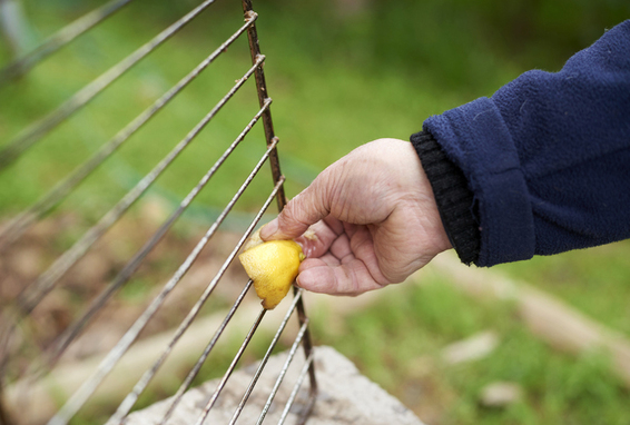 Ein einfaches und besonders kostengünstiges Wundermittel ist eine halbe Zitrone in Kombination mit Salz. Hierfür tunken Sie die halbe Zitrone mit der Schnittfläche in Salz, spiessen sie auf Ihre Grillzange oder eine lange Gabel und reiben sie über den noch heissen Rost. Die Zitrone löst in Verbindung mit Salz besonders gut Fett- und Speisereste.