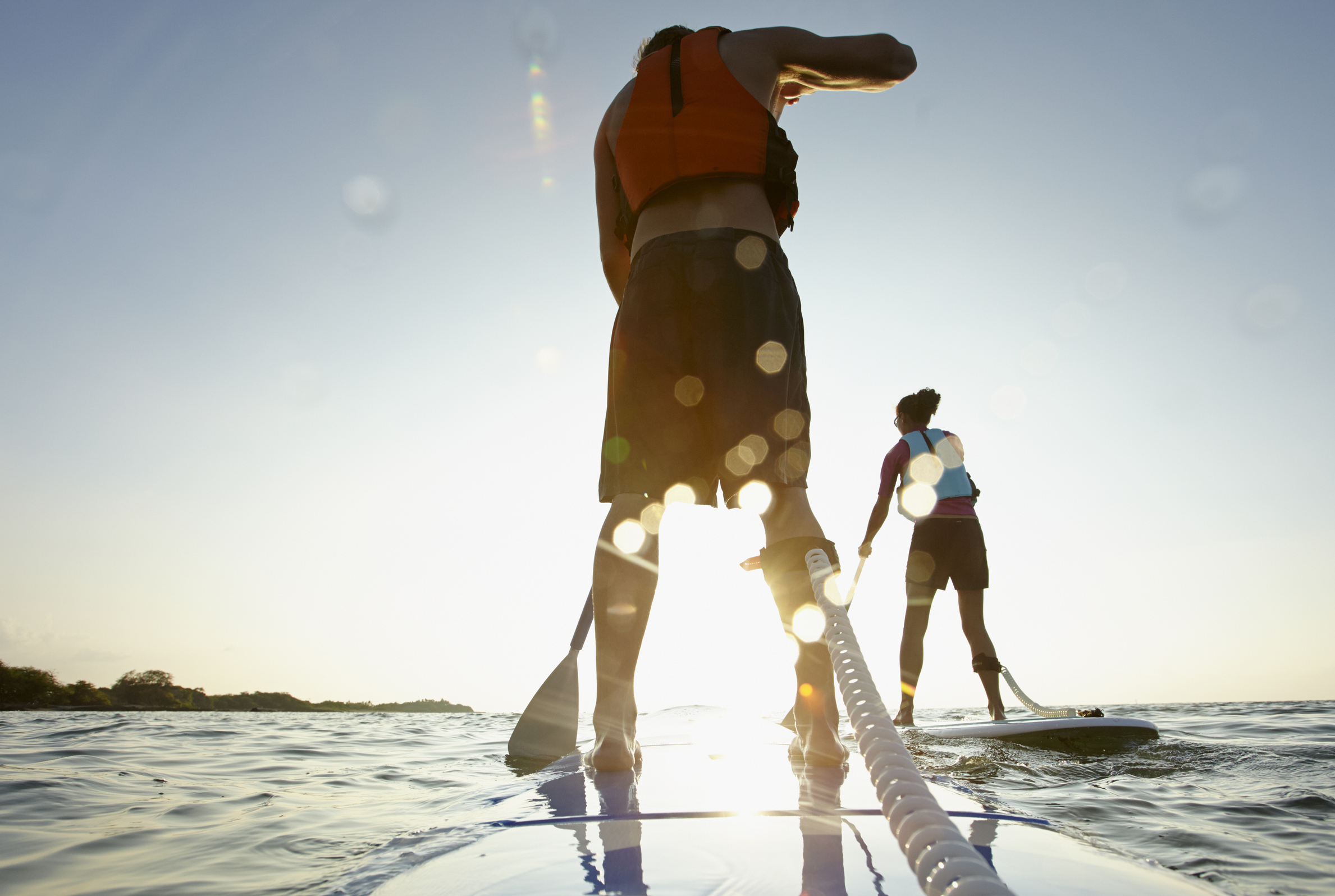 «Pour les débutants, je conseille les modèles gonflables Allround ou Freeride», dit Andreas. Ces planches ont une longueur de 10,4 à 11,6 pieds (1 pied équivaut à 30,48 cm). «Le paddle idéal a le nez rond. Si vous pesez moins de 60 kg, optez pour une planche large de 30 pouces; si votre poids se situe entre 60 et 80 kg, une largeur de 32 pouces est indiquée; les personnes avec des problèmes d’équilibre et pesant de 90 à 120 kg préfèreront les modèles de 34 pouces de largeur et de 12 pieds de longueur (1 pouce équivaut à 2,54 cm). Plus la planche est large, plus elle sera stable. Plus elle est longue, plus elle supportera de poids. Si vous êtes sportif et souhaitez entreprendre des tournois, choisissez un modèle Touring ou Race. «La planche rigide convient aux personnes qui pratiquent le SUP toute l’année».